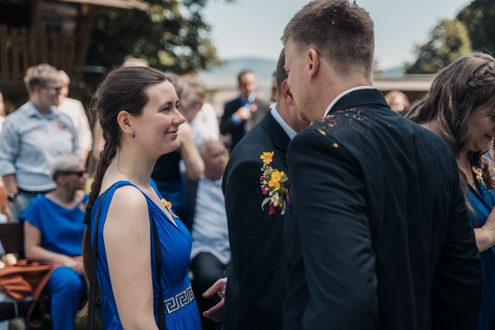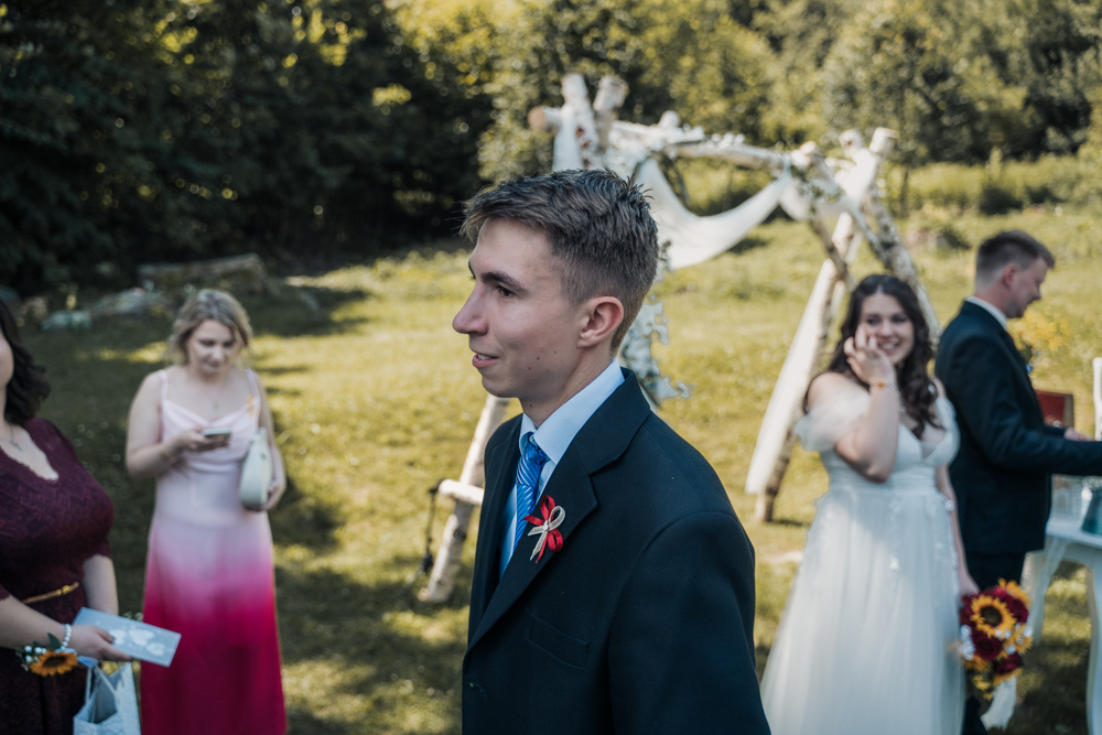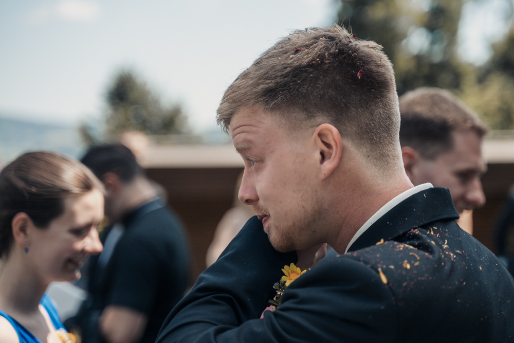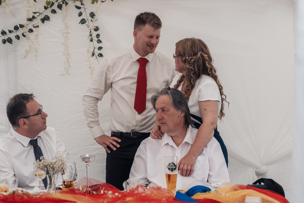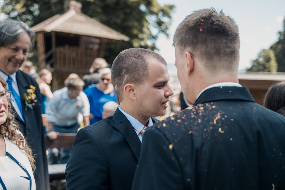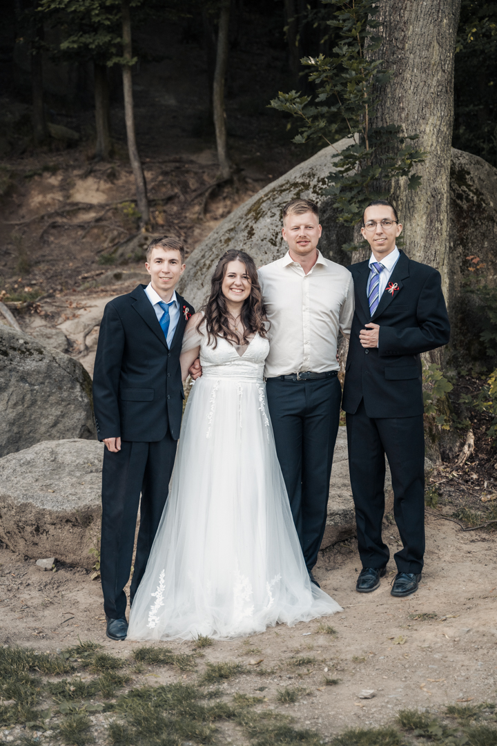 Vždycky se cítím trochu divně, když jsem na druhé straně fotoaparátu, takže jsem opravdu ráda, že jsme vás požádali o focení. Vyprávěl jste příběh toho dne opravdu brilantně a já mám pár fotek našich přátel, kterých si můžeme opravdu vážit. Miluji ty děti pobíhající kolem, jsem tak ráda, že máte ty mého synovce! Mého bratra a Jana, Janova maminka a tatínek zblízka a manžel mé družičky s kloboukem na hlavě patří mezi mé nejlepší tři!
