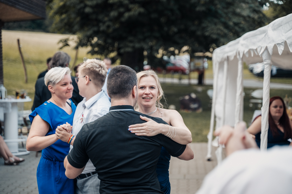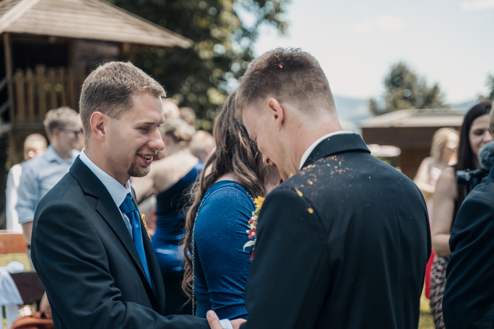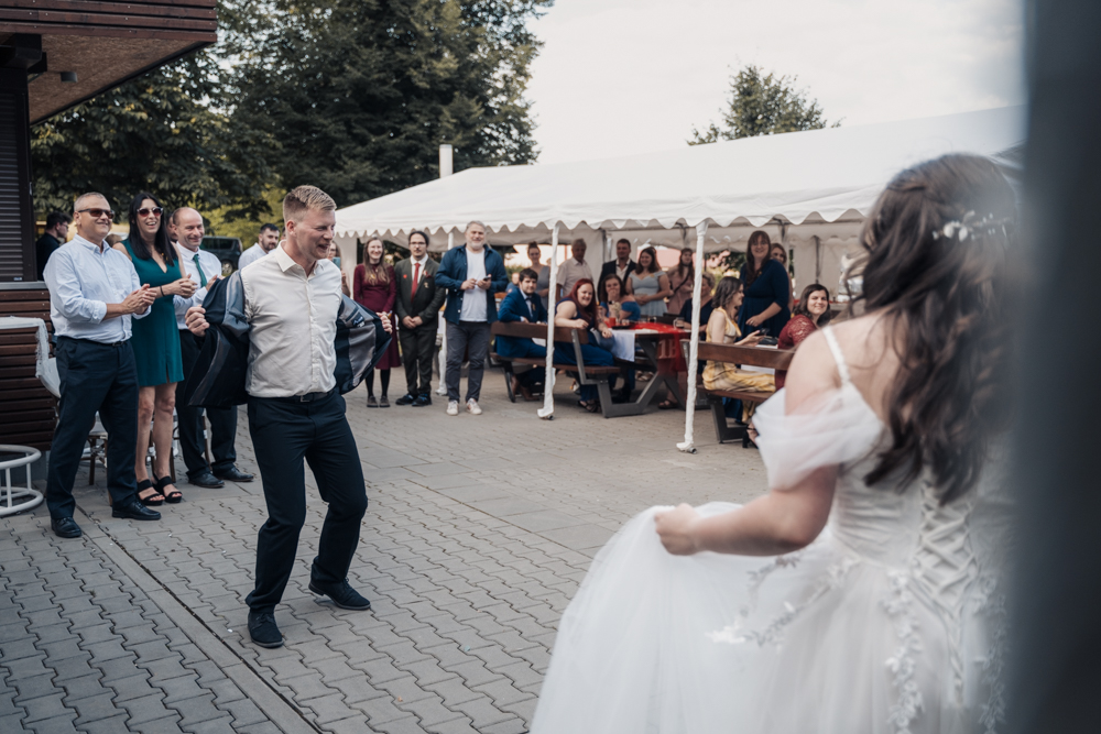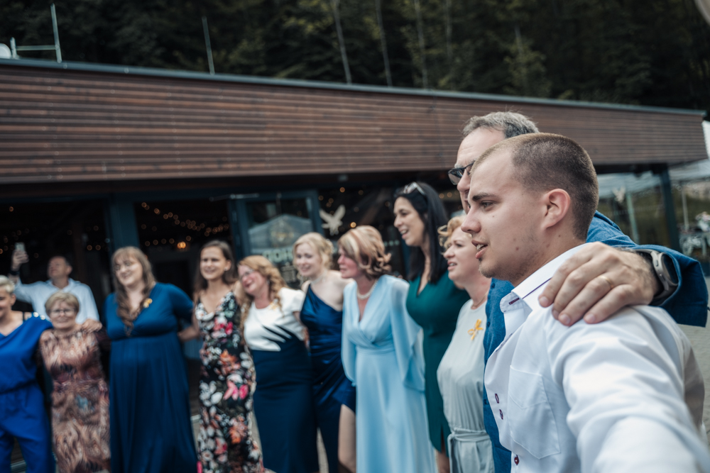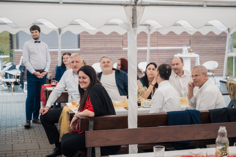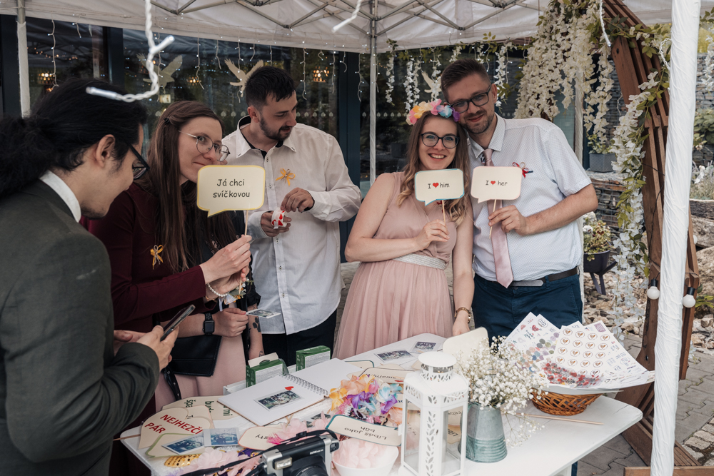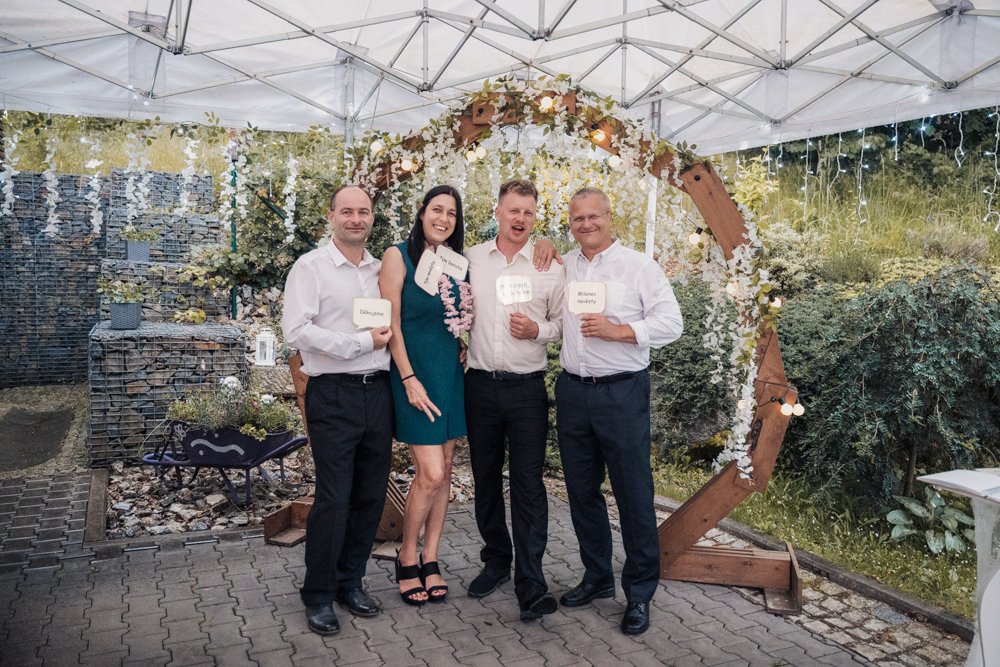 Takže vám moc děkuji za to, že jste skvělý fotograf, jsme rádi, že jsme vybrali právě vás, myslím, že hosté byli rádi, že také nemuseli postávat a čekat na obvyklé pózované fotky!“