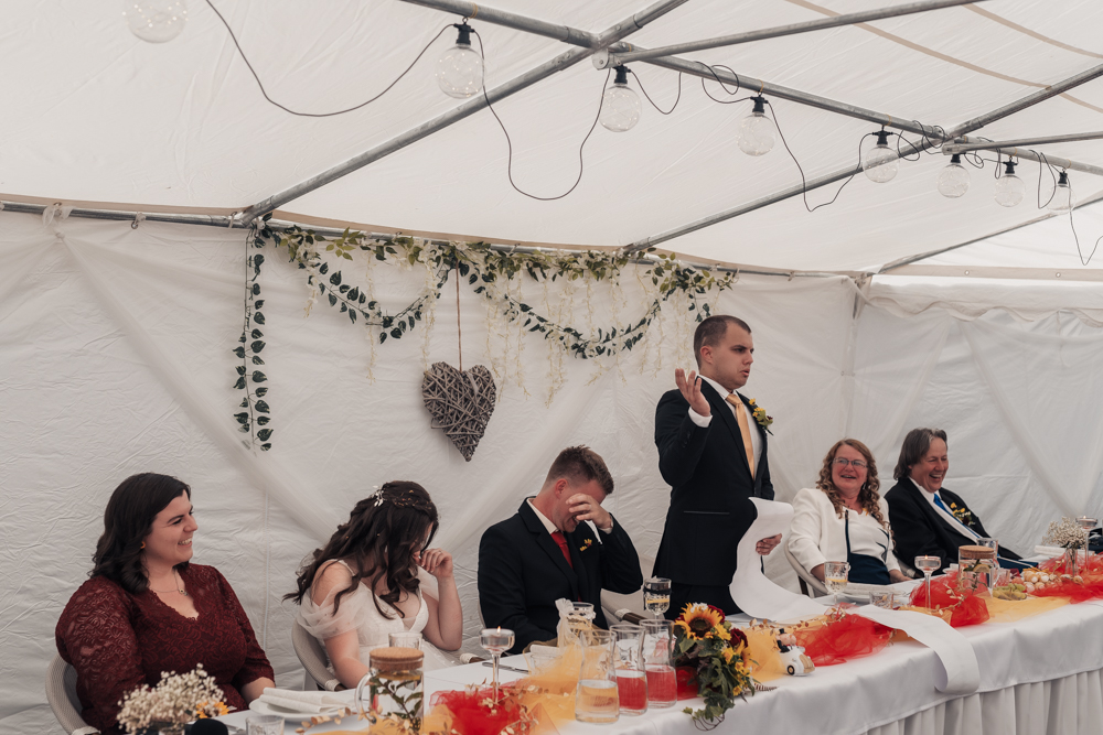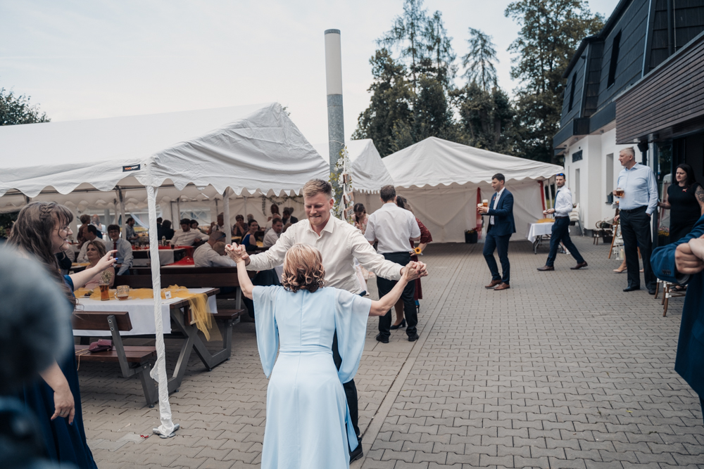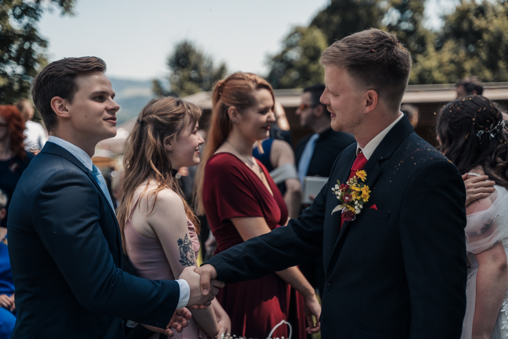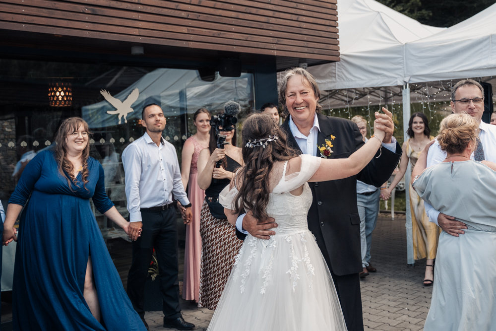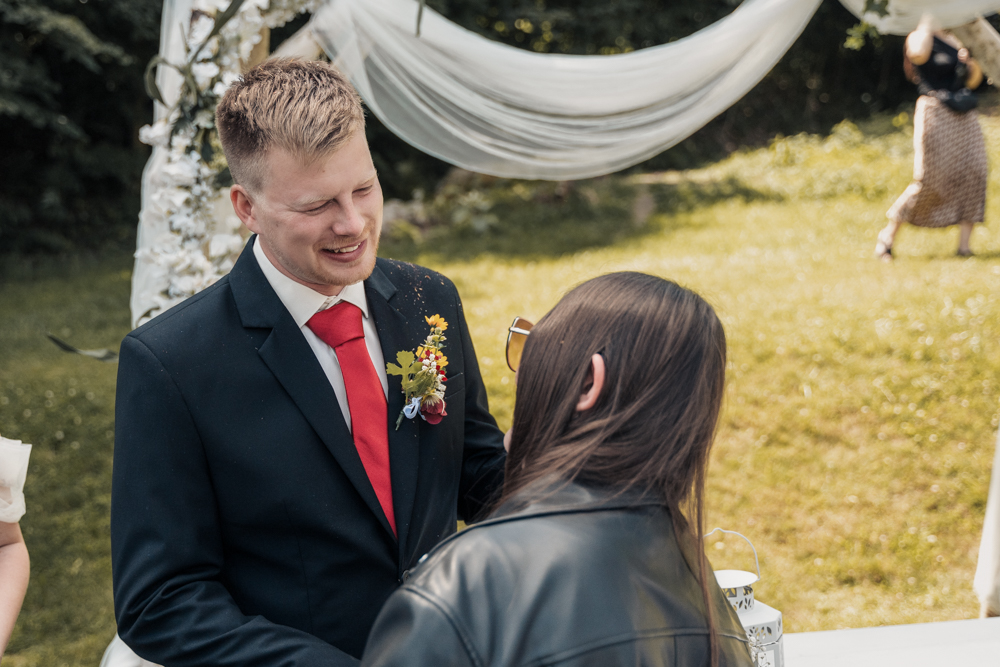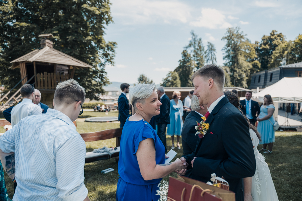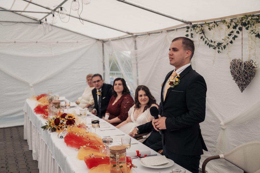 Takže vám moc děkuji za to, že jste skvělý fotograf, jsme rádi, že jsme vybrali právě vás, myslím, že hosté byli rádi, že také nemuseli postávat a čekat na obvyklé pózované fotky!“