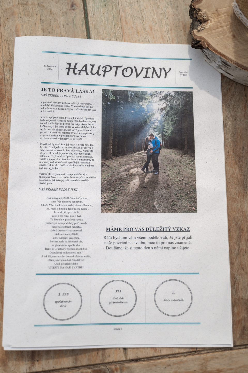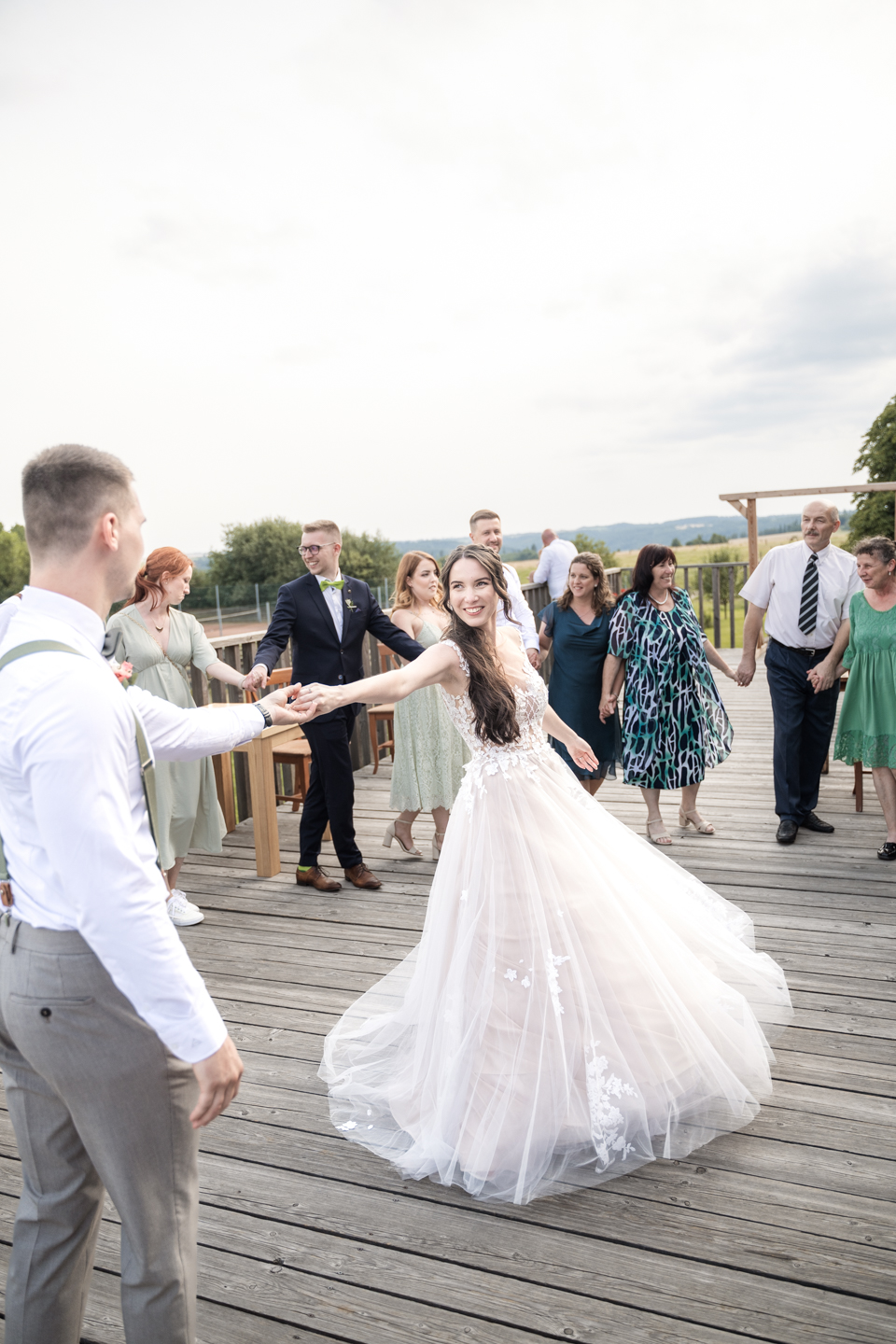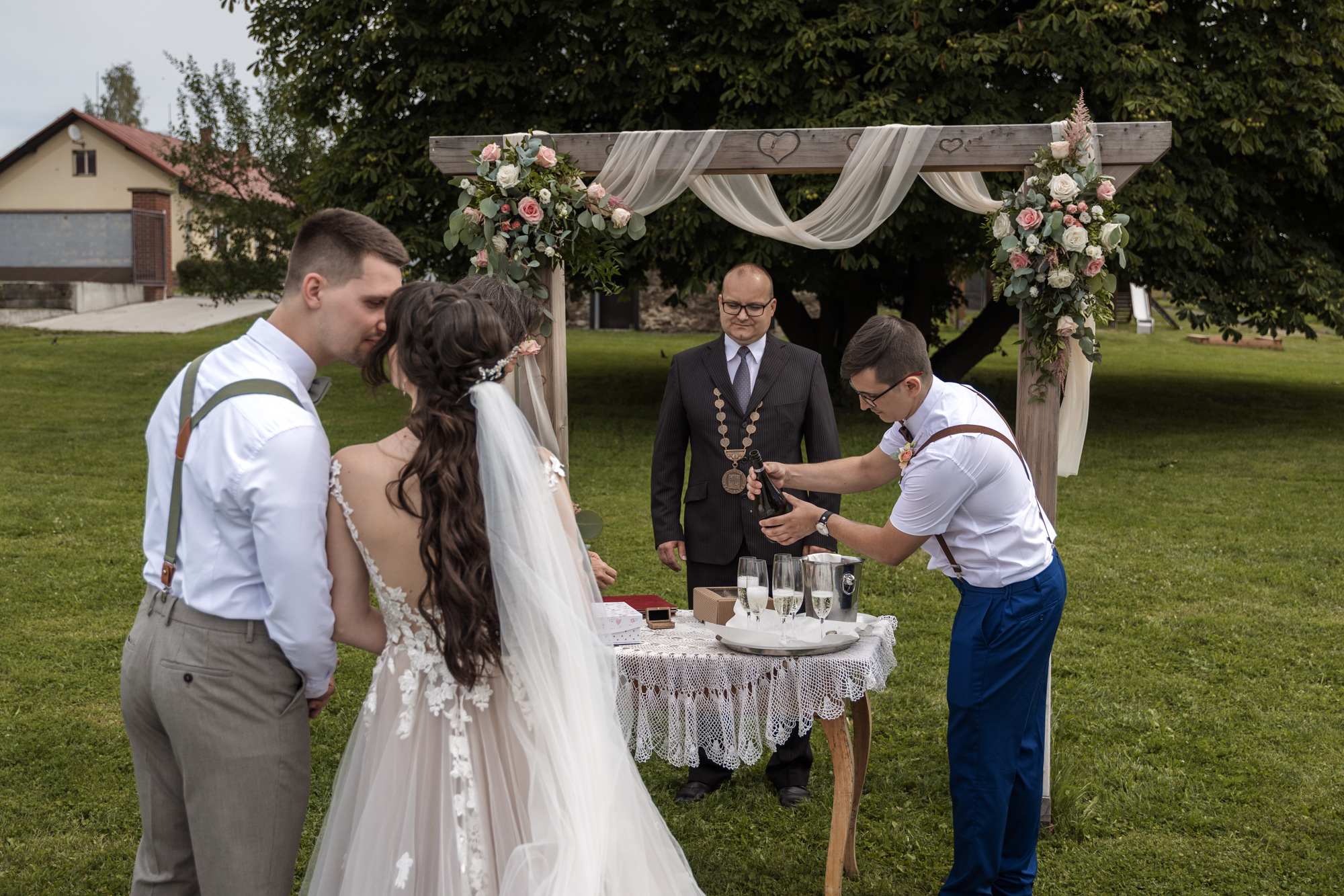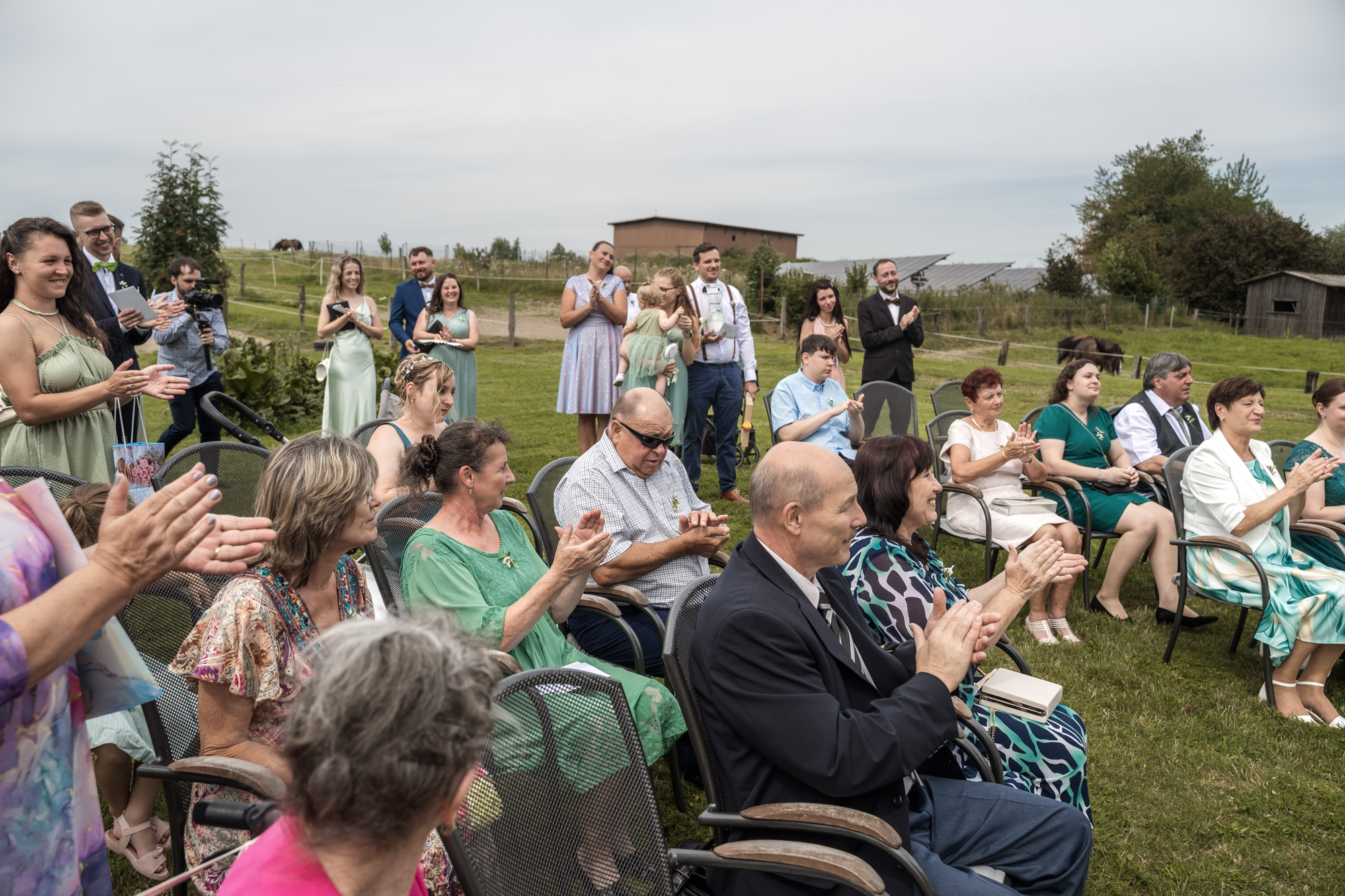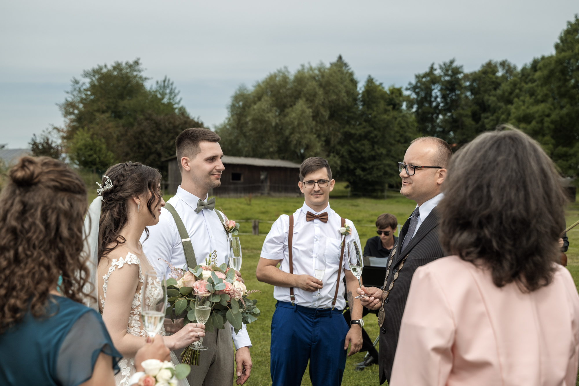 Takže vám moc děkuji za to, že jste skvělý fotograf, jsme rádi, že jsme vybrali právě vás, myslím, že hosté byli rádi, že také nemuseli postávat a čekat na obvyklé pózované fotky!“