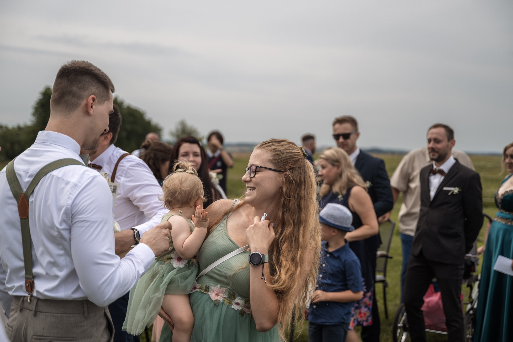 Vždycky se cítím trochu divně, když jsem na druhé straně fotoaparátu, takže jsem opravdu ráda, že jsme vás požádali o focení. Vyprávěl jste příběh toho dne opravdu brilantně a já mám pár fotek našich přátel, kterých si můžeme opravdu vážit. Miluji ty děti pobíhající kolem, jsem tak ráda, že máte ty mého synovce! Mého bratra a Jana, Janova maminka a tatínek zblízka a manžel mé družičky s kloboukem na hlavě patří mezi mé nejlepší tři!